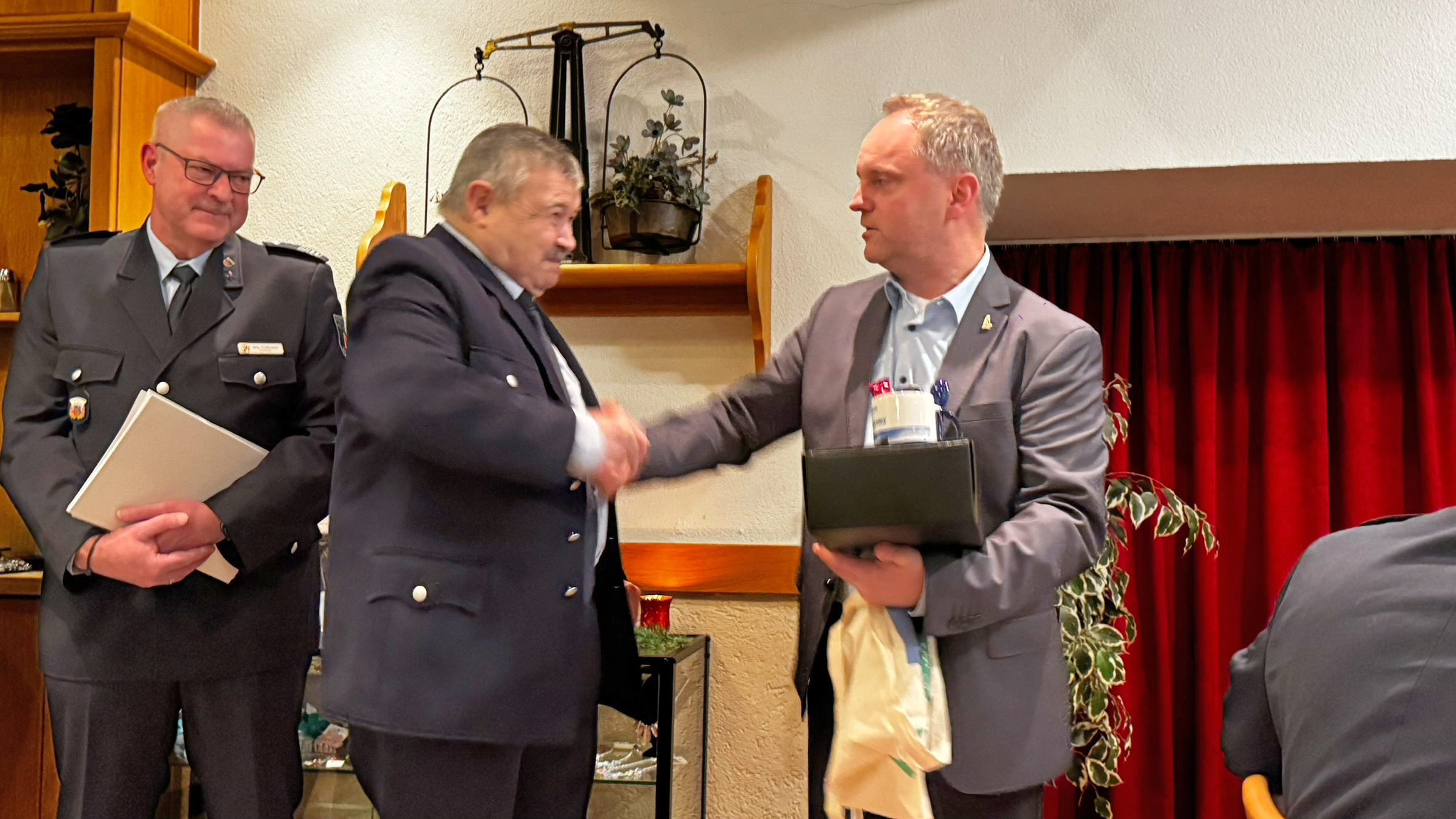Im vollbesetzten Saal begrüßte die 1. Vorsitzende des Fördervereins, Frau Christiane Kölsch-Rein, neben den Aktiven und Alterskameraden, auch den Bürgermeister der Verbandsgemeinde Loreley Herrn Mike Weiland, den Wehrleiter Herrn Jörg Preißmann, Herrn Josef Stather, der jedes Jahr den Reinerlös seines Likörstandes beim Feuerwehrfest nicht nur unserem Förderverein sondern auch anderen guten Zwecken in St. Goarshausen zukommen lässt. Zudem bedankte sich Frau Kölsch-Rein im Namen des Fördervereins bei Herrn Lars Klöckner vom ortsansässigen REWE Markt, dass er es im zurückliegenden Jahr wie auch für 2026 ermöglicht hat, die Vereinskarte in seinen REWE Märkten einzusetzen. Im Jahr 2025 kam hierüber und über die Pfandbonsammelaktion zum wiederholten Male eine beachtliche Summe für die Unterstützung des Fördervereins der Freiwilligen Feuerwehr zusammen. Danach gab die 1. Vorsitzende einen kurzen Überblick über die Aktivitäten des Fördervereins und dessen Investitionen für die Einsatzabteilung im Jahr 2025. Nach den Grußworten von Wehrführer Dirk Jacoby, der zudem über die aktuelle und zukünftige Mannschaftgröße und die beachtliche Einsatzstatistik von 108 Einsätzen im Jahr 2025 informierte, folgten von Bürgermeister Mike Weiland Grußworte und Informationen über beauftrage Fahrzeuganschaffungen, derzeitige Sachstände und ein Ausblick zum Neubau des Feuerwehrgerätehauses.