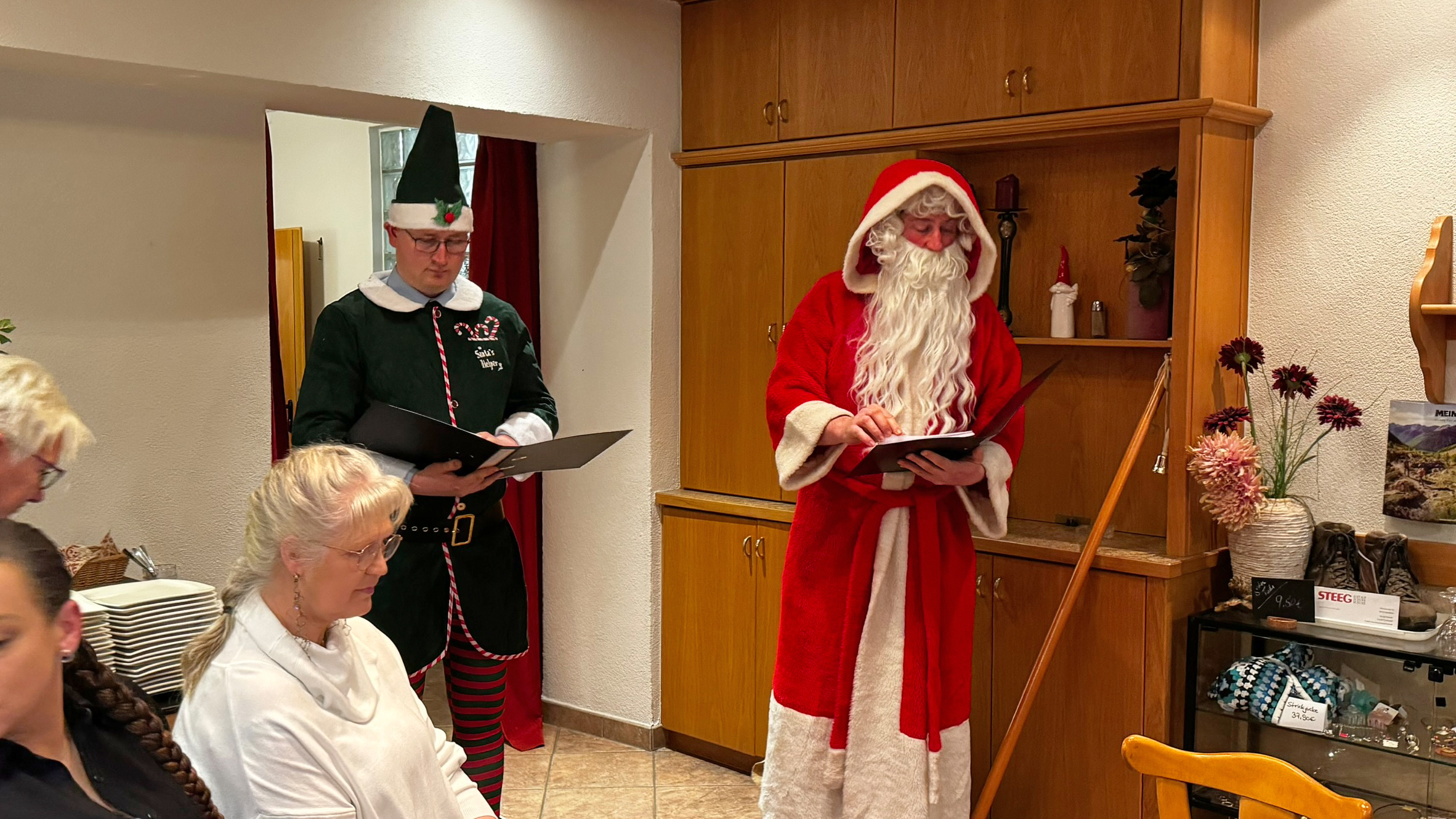 Nach dem gemeinsamen Abendessen zeigten der Nikolaus und sein Weihnachtself in einem wunderbar humoristischen Vortrag den Feuerwehrkameradinnen und -kameraden ihre „Verfehlungen“ des abgelaufenen Jahres auf.